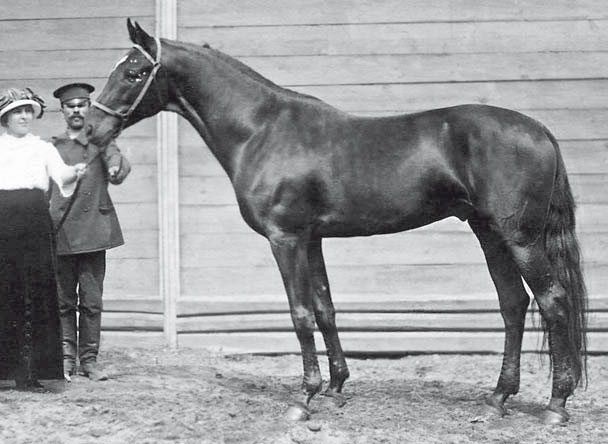 Перейду теперь к характеристике тех 23 кобыл, которых я купил в 1913 году. Ежегодно посещая Лотарёвский завод князя Вяземского, я всегда стремился купить у него заводской материал, поскольку был очень высокого мнения о составе этого завода. Однако сделать это было не так-то легко, ибо Вяземский никогда не продавал заводских маток. В 1913 году мне посчастливилось купить в Лотарёве пять кобыл. Одна из них, Моряна, была уже очень стара; Радугу, знаменитую призовую кобылу своего времени, уступили мне по охоте; а три остальные – Ася, Задорная и Миноноска – оказались интересными кобылами. Худшей из них была Миноноска (Гай – Маска, зав. Г. Г. Елисеева), р. 1904 г. Описывая приплод Громады, я уже имел случай упомянуть о Гае. Его дочь Миноноска получилась очень хороша по себе – у кобылы был, что называется, замечательный фронт и много типа, но она была узковата и высока на ногах. Я ее продержал год и продал на аукционе в Дубровском заводе С. С. Корсакову.
