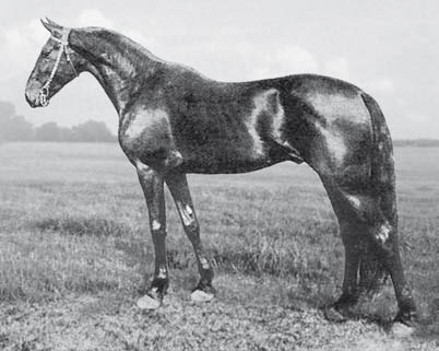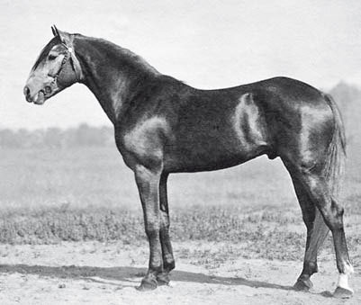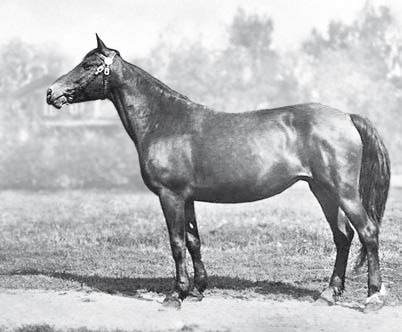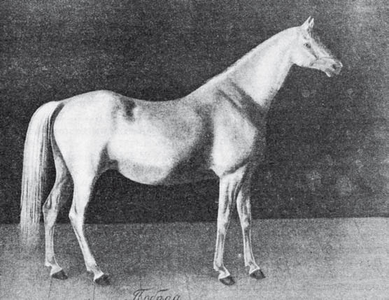 Маковка имела не менее трех с половиной вершков росту. Голова у нее была хорошая, с очень широким лбом; кончики небольших ушей завивались назад, что в Прилепах наблюдалось еще только у одной кобылы – Кабалы. Шея была хороша; спина, несмотря на старость, идеальна; задние части превосходны; ноги образцовые. Кобыла была длинна, суха и утробиста. По типу она очень напоминала дочерей кожинского Потешного. Во всех отношениях это была замечательная кобыла, и можно лишь пожалеть, что Щёкин ни разу не случил ее с Бережливым для повторения имени великого кожинского Потешного. Когда в заводе Щёкиных Маковка была покрыта с жеребцом линии Полкана 3-го, то от нее родилась классная и выдающаяся по себе Младость.