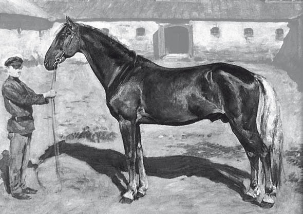 Первый год существования моего завода крыл кобыл Рыцарь, а его дочерей – один из жеребцов, находившихся в Касперовке, а также жеребцы моего брата. Так было до покупки первого моего производителя – вороного жеребца Типичного завода Борисовских. Я купил его заглазно в Санкт-Петербурге. Вместе со мной в кавалерийском училище учился юнкер Буланец, который рассказывал мне чудеса о красоте жеребца Типичного, принадлежавшего г-же Ильенко, вдове Е. М. Ильенко. Мне нужен был жеребец, я посмотрел породу Типичного и пришел в восторг. Типичный родился в 1882 году от Молодчика и знаменитой Тучи. В нем оказалось все лучшее, что было по кровям в Борисовском заводе, притом именно классически призовое. Я с пылом юноши решил, что сам Бог посылает мне этого знаменитого, как мне тогда казалось, жеребца. На меня, конечно, подействовало и то, что Типичный был когда-то куплен Е. М. Ильенко, большим знатоком лошади, а равно и рассказы о красоте Типичного. Все это меня так наэлектризовало, что я купил этого жеребца заглазно за 500 рублей. Типичный крыл у меня кобыл один сезон. Он был куплен осенью 1901 года, а после случки в 1902-м я продал его за те же деньги А. С. Путилову, так что на этой лошади я ничего не потерял. Типичный был действительно хорош по себе, а оскал, голову и шею имел поразительной красоты. У меня сохранился превосходный портрет Типичного кисти Репина-сына. Увидев этот портрет, Путилов поспешил купить Типичного, причем так волновался, как бы я не раздумал его продать, что сейчас же поехал домой за деньгами. Типичный был хорош по себе, а Репин его еще несколько приукрасил, а потому не удивительно, что он понравился Путилову.