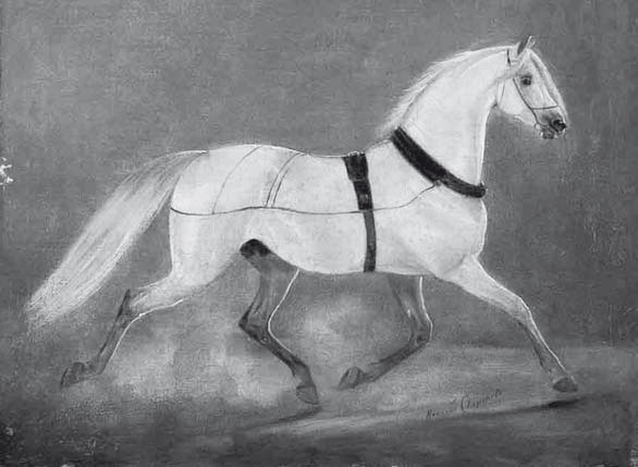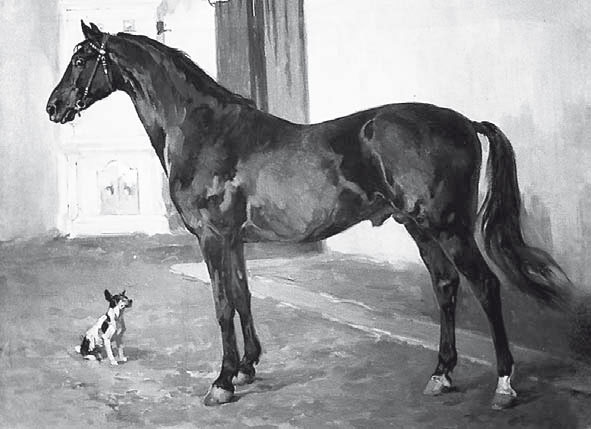 Кобыла Ася (Альвин – Русалка) имела хороший рекорд 2.24,3 и была очень интересного происхождения со стороны матери: приходилась внучкой знаменитой воронцовской Переправе. Ася дала недурных лошадей в Лотарёве, а мне принесла двух кобылок, после чего я продал ее А. А. Мерхелевичу. Я не расстался бы с Асей так скоро, но дело в том, что у Мерхелевича было девять интереснейших портретов кисти Сверчкова (шесть оригиналов и три копии), принадлежавших когда-то его деду, знаменитому коннозаводчику Н. А. Дубовицкому. Среди изображенных лошадей были Туман – отец знаменитого колюбакинского Варвара, Чародейка – мать болдаревского Чародея, Первенец – сын Горюна, Молодец 2-й и др. Я давно торговал эти портреты, но Мерхелевич их не продавал. В 1914 году он приехал в Прилепы, и здесь состоялся обмен: я получил портреты, а Мерхелевич – Асю.