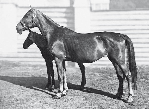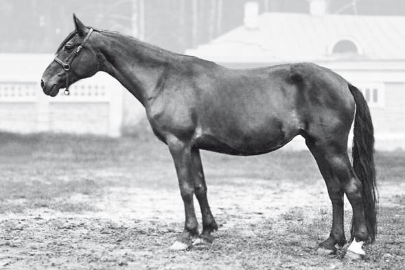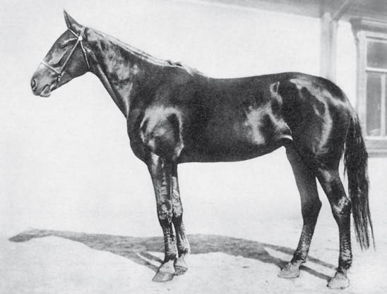 Теперь можно перейти к описанию форм и заводской деятельности кобылы Приятельницы. В ней не было трех вершков росту. Масти она была светло-гнедой, с черной гривой и черным хвостом. По себе кобыла получилась очень хороша, необыкновенно пропорциональна и гармонична: голова небольшая и очень выразительная, шея хорошая, спина, связка и круп замечательные, ноги образцового постанова и исключительно сухи. Кобыла широко стояла задом и была очень глубока. Высокая породность угадывалась во всем: в тонкой коже, в атласной короткой шерсти, в голове. У Приятельницы не было одного глаза, а в 15 лет она ослепла и на второй. По экстерьеру Приятельница была замечательной кобылой, такие редко встречаются среди орлово-американских лошадей. Коноплин очень высоко ценил Приятельницу и считал, что она не тише Слабости, да и заводской маткой, по его мнению, она была более интересной и надежной, чем Слабость. Он рекомендовал мне ее беречь и не расставаться с ней – и оказался прав.