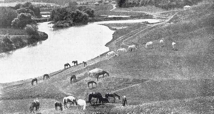 Теперь перейду к покупке Каши. Вместе с Сахновским мы посмотрели всех заводских маток на выводке, и больше всех мне понравилась Каша. Вечером мы поехали в табун, я еще раз хотел посмотреть маток на свободе. Шибаевский табун ходил довольно далеко, верстах в пятнадцати от усадьбы, и мы с Сахновским поехали туда в линейке. Среди холмов, ложбин и оврагов, промеж золотистых полей и местами поросших кудрявым кустарником пригорков ходил табун рысистых маток. Над сонной речонкой, по пологому склону бугра, были устроены пригоны, и там все лето укрывался от жары табун маток, который остальное время и днем, и ночью ходил на пастбище. Долго вместе с Сахновским бродили мы по табуну, и здесь Каша мне еще больше понравилась. Куда ни посмотришь, а перед глазами все она, и я не мог ею налюбоваться.