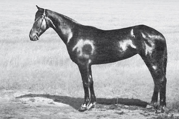 Матерью Каши была гнедо-пегая кобыла Комета, родившаяся в заводе А. А. Соловцова. Она была в свое время очень резва и выигрывала. Попытаемся объяснить ее гнедо-пегую масть, столь необычную для рысистых лошадей в наше время. Фотографии Кометы не сохранилось, но я видел у Миндовского фотографию его табуна, и там на первом плане пасется Комета. Пегой в полном смысле этого слова ее назвать нельзя: она была гнедая и на брюхе у нее имелось большое белое пятно. За время своей заводской деятельности Комета не дала ни одной пегой лошади, хотя и перебывала в нескольких заводах и крылась разными жеребцами. Мать Кометы, рыжая кобыла Искра, не давала не только пегих, но даже отметистых лошадей, о чем мне говорил Юрлов, в чьем заводе Искра одно время состояла заводской маткой. Я считаю, что пежину она получила через своего отца Кролика, который был лошадью посредственного происхождения и по материнской линии едва ли принадлежал к рысистым лошадям. Мать Кролика Хапушка была дочерью Чистой от Чернички, произошедшей от кобылы без имени. А со стороны отца Черничка была внучкой Хапуги Н. Д. Домогацкого, которая едва ли была рысистой лошадью.