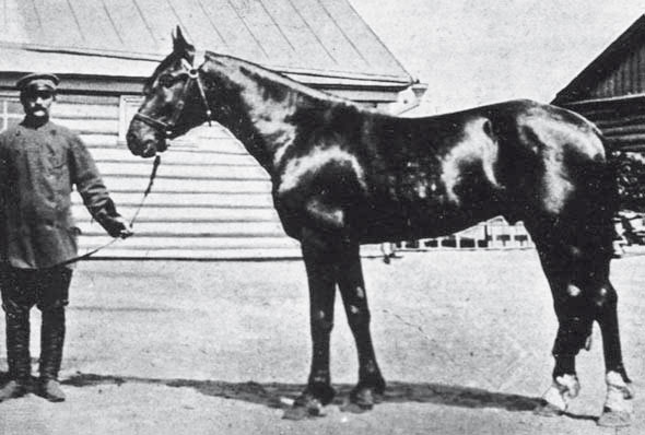 Заводская карьера Кронпринца, к несчастью для этого жеребца, развернулась уже после революции, а стало быть, складывалась ненормально и сопровождалась всякими бедами и лишениями. От бескормицы, а подчас и настоящего голода пали многие дети Кронпринца, и я имел несчастье наблюдать гибель лучших из них. К бескормице прибавились еще болезни, небрежный уход, грубое обращение и все прочие прелести революционного режима, а потому Кронпринц в заводе не мог быть использован так, как он был бы использован в нормальных условиях.