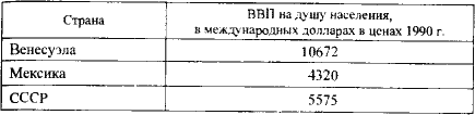 ВВП на душу населения в Мексике, Венесуэле и СССР в 1970 г.