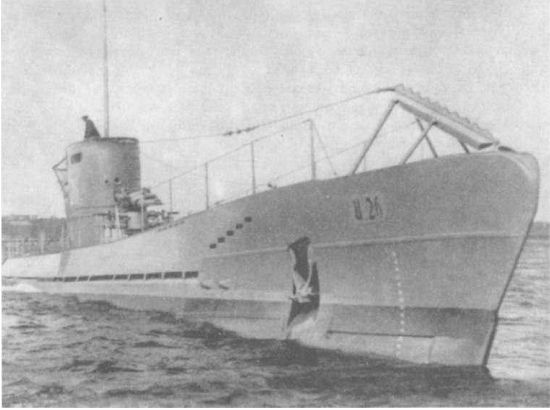 Большая немецкая субмарина U26 (IA серии), использовавшаяся в качестве подводного минного заградителя