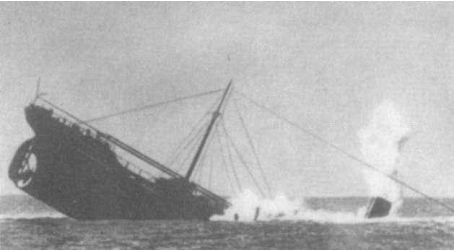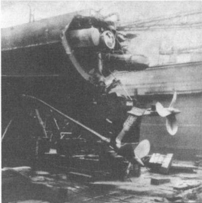 Корма немецкой подводной лодки, подорвавшейся на мине