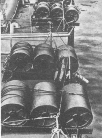 Глубинные бомбы на корме эскортного корабля готовы к бою