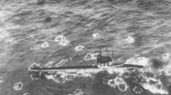 Немецкая подводная лодка под ударом противолодочной авиации союзников
