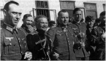 Гитлеровские казаки. Второй слева — А. Г. Шкуро, третий слева — Г. фон Паннвиц