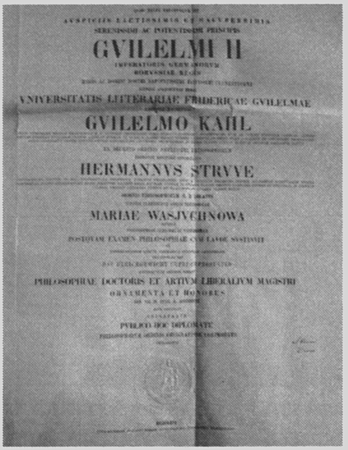 Диплом доктора філософії хіміка Марії Васюхнової, виданий Університетом Фрідріха-Вільгельма в Берліні у 1909 році