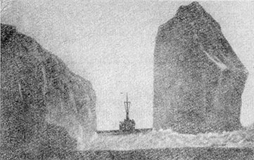 В Антарктике можно наблюдать, как от материковых льдов отрываются гигантские айсберги. Отдельные великаны возвышаются над водой на 50–70 м, а их протяженность достигает 100 и более километров. Вес такого исполина в тоннах порой выражается десятизначными цифрами. Айсберг-великан, сидящий на мели, был обнаружен советской антарктической экспедицией в 1966 г. в море Космонавтов вблизи станции Молодежная. Отцом этого феномена, как полагают, был гигантский кусок льда, отколовшийся от ледника Эймэри и приплывший в море Космонавтов. С наступлением осени штормы и океанская зыбь сдвинули ледяную гору с места. От нее откололись оставшиеся на мели мелкие айсберги, а сам айсберг стал медленно дрейфовать в юго-западном направлении и уплыл в море Содружества. В пути айсберг раскололся на несколько обломков. Площадь айсберга, которую удалось рассмотреть с самолета, составляла свыше 7000 км2. Воздушная разведка определила и его приблизительные размеры: длина — 150 и ширина 40 км.