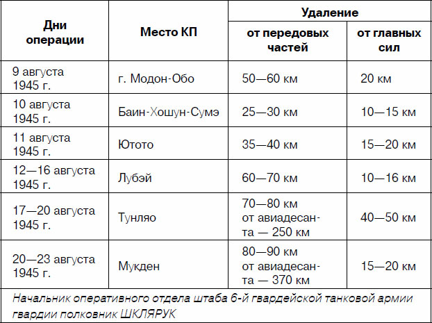 УДАЛЕНИЕ КП 6-Й ГВАРДЕЙСКОЙ ТАНКОВОЙ АРМИИ С 9 ПО 23 АВГУСТА 1945 ГОДА