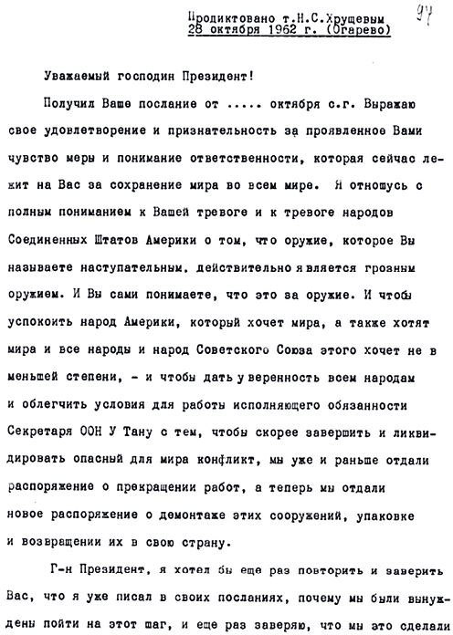 Документ № 90 Переписка Хрущёва и Кеннеди 27–28 октября (1962 г.)