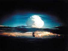 – В период испытания бомбы произошло разрушение зданий, выполненных из кирпича, в радиусе четырех километров, а мост со стотонными пролетами отбросило на 200 метров.