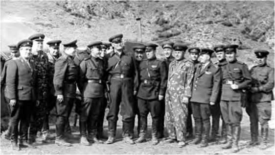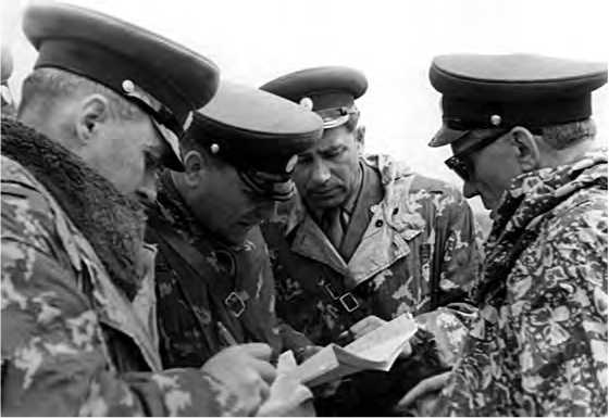Когда генерал-лейтенанты М.К. Меркулов и П.И. Ионов сошли с вертолета, то я с удивлением у обоих увидел полковничьи погоны. Не успел выразить своего удивления, как подошли командующий Туркестанским военным округом генерал армии Н.Г. Лященко и командующий 18-й армией генерал-лейтенант Н.Г. Сильченко. Оба в полной генеральской форме. Богатырская фигура командующего военным округом, который на добрых две головы был выше всех остальных, хорошо маячила издалека, и, несомненно, его присутствие в районе событий наблюдатели сопредельной стороны давно зафиксировали.