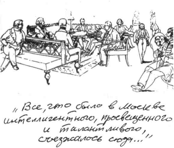 — Все, что было в Москве интеллигентного, просвещенного и талантливого, съезжалось сюда по воскресеньям, — сказал профессор Московского университета Степан Петрович Шевырев.