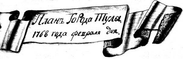 1. Каменной город, 2. Соборная церковь Успения Пресвятые Богородицы, 3. Провинцыальная канцелярия, 4. Архива, 5. Духовное правление, 6 Воевоцкий дом, 7. Обывательское строение, 8. Соляные анвары и магазины, 9. Остроги, 10. Монастырь Иоанна Предтечи, 11. Монастырь девич Успения Пресвятые Богородицы, 12. Магистрат, 13 Ряды и лавки (под черной тушью значит погорелые реды и лавки), 14. Площадь, 15. Обывательское строение, 16 Земляной вал которой простирается на несколко верст, 17. Конюшни кирасирского Киевского полка, 18. Река Упа источник свой имеет в Кропивенском уезде, а впадает в реку Оку близ города Лифина; За рекою Упою: 19. Казенной оружейный вододействующий завод, 20. Бывшие Демидова завод, 21 Пруд ево Демидова, 22. Оружейной каменной двор где и оружейная канцелярия, 23. Пороховой погреб, 24. Слободы оружейных мастеров, 25. Обывательское строения, 26. Вал зделанной для потопления Тулы, 27. Николской мост через реку Упу, 28. Кривой мост, 29. Плотина, 30. Перекопской мост.
