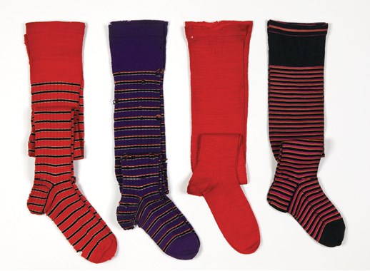 1. Полосатые мужские носки Викторианской эпохи. 1860-е. Две пары справа датированы 1862 г. Галерея костюма в Манчестере