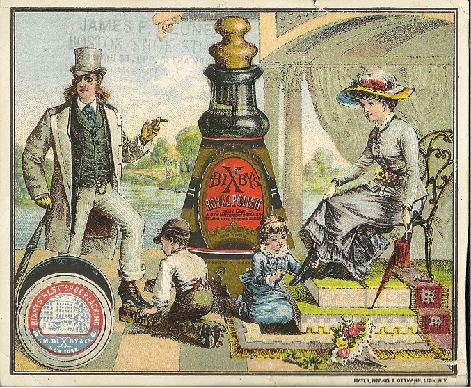5. Рекламная карточка средств для обуви: Bixby’s Royal Polish для дамских туфель и Bixby’s Best Blacking для ботинок джентльменов. Около 1880. Хромолитография. Из коллекции автора
