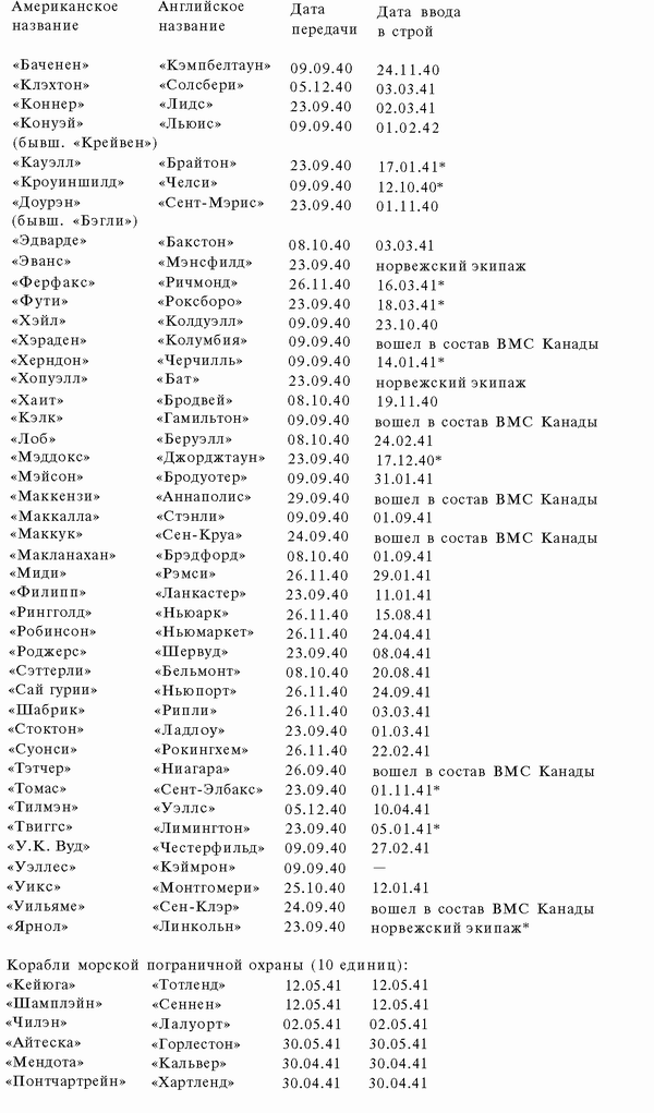 АМЕРИКАНСКИЕ ЭСМИНЦЫ И КОРАБЛИ МОРСКОЙ ПОГРАНИЧНОЙ ОХРАНЫ, ПЕРЕДАННЫЕ СОЕДИНЕННЫМИ ШТАТАМИ ВЕЛИКОБРИТАНИИ