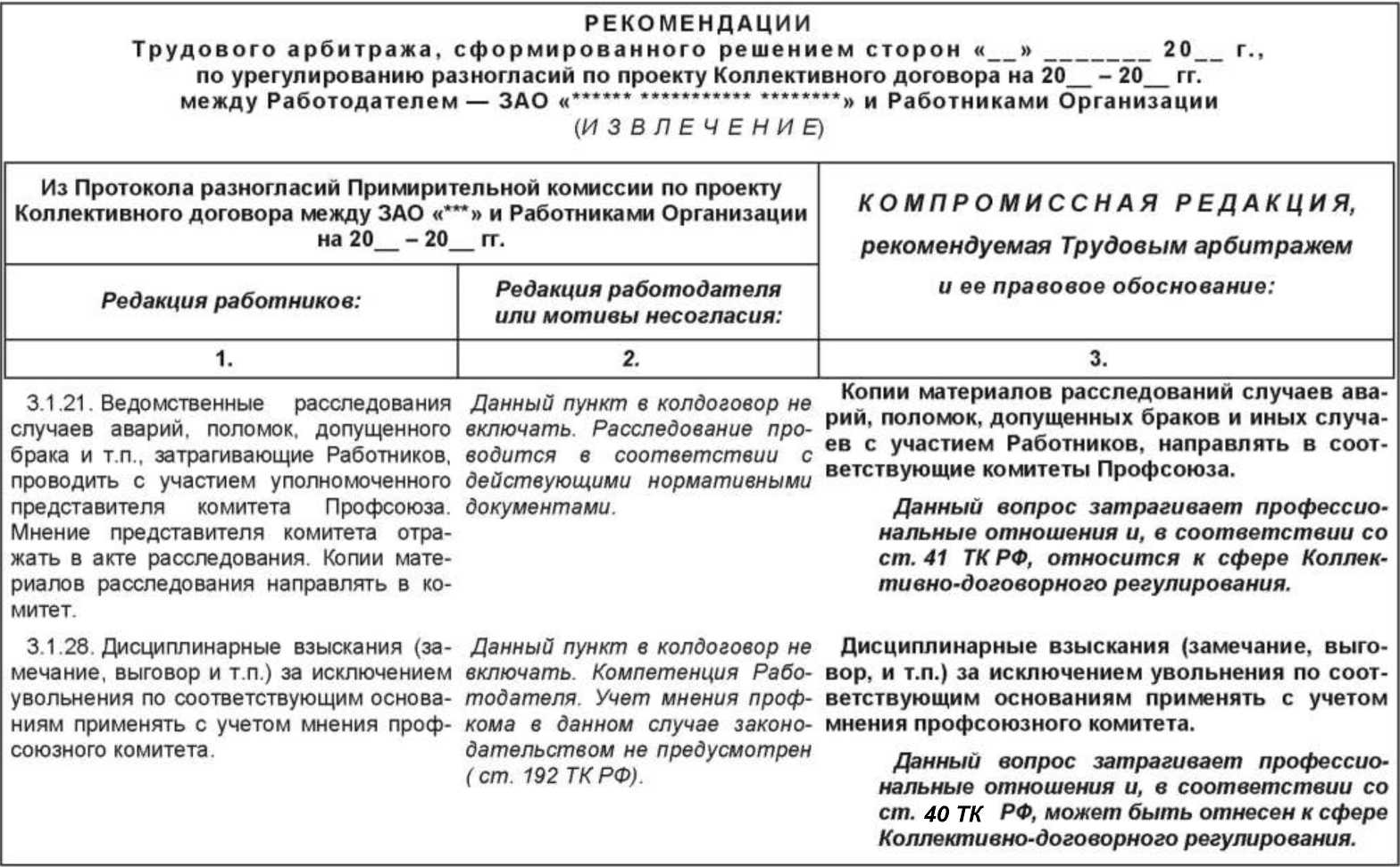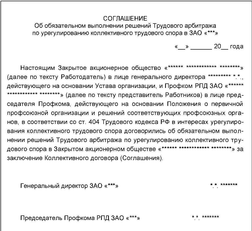 Соглашения сторон коллективного трудового спора об обязательном выполнении Рекомендаций Трудового арбитража
