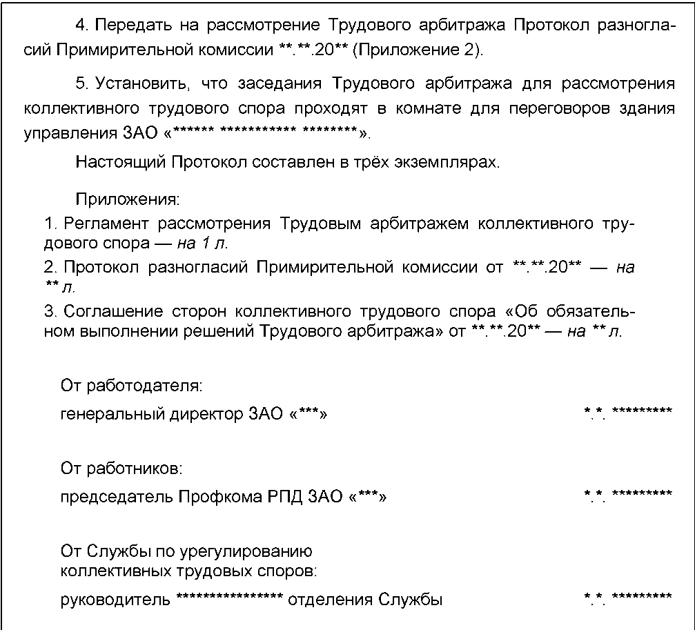 Протокол о том, что Трудовой арбитраж создаваться не будет