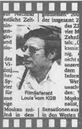 Таким элегантным и загадочным «советским Джеймсом Бондом из Баковки» В. Луи представал перед западными СМИ. Подпись под фото: «Поставщик плёнок Луи из КГБ». Bild. ФРГ, 1984 г.