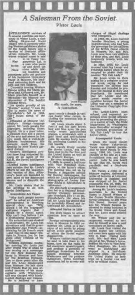 «Продавец из Советов». Одна из «разоблачительных» западных статей о В. Луи. New York Times. Август 1967 г.