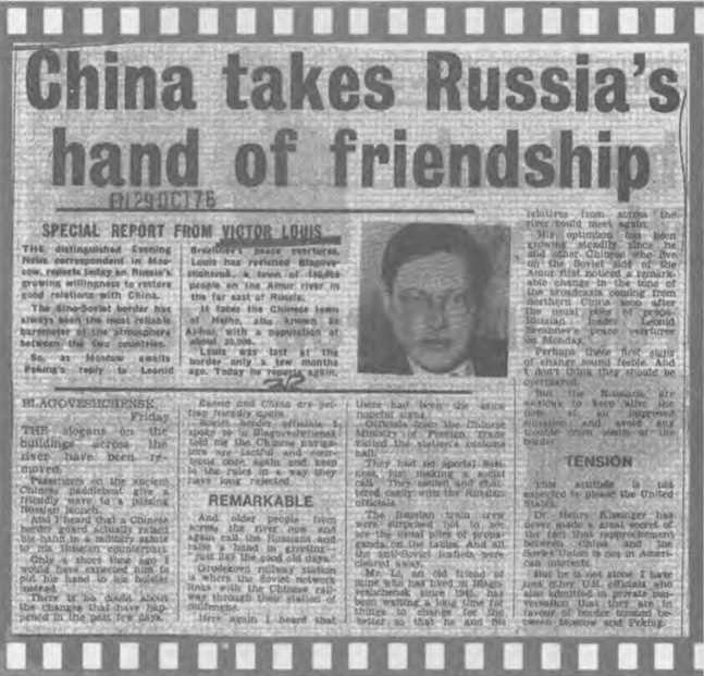 Умер Мао Цзэдун. В. Луи считает себя победителем в схватке с Китаем и делает «эксклюзивный» выездной репортаж с китайской границы о потеплении отношений между СССР и КНР