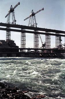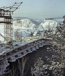 Строительство ГЭС развернулось в 1954 году на реке Ангаре. Маленький поселок Братск в скором времени разросся до крупного города. Строительство ГЭС позиционировалось как ударная комсомольская стройка. На освоение Сибири съезжались сотни тысяч комсомольцев со всего Союза. До 1971 года Братская ГЭС была крупнейшей в мире, а Братское водохранилище стало крупнейшим в мире искусственным водоемом. При его заполнении было затоплено порядка 100 деревень. Трагедии «Ангарской Атлантиды», в частности, посвящено пронзительное произведение Валентина Распутина «Прощание с Матерой».