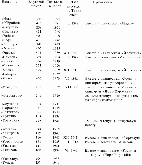 Приложение XII Американские эсминцы (январь 1942 года — сентябрь 1942 года)