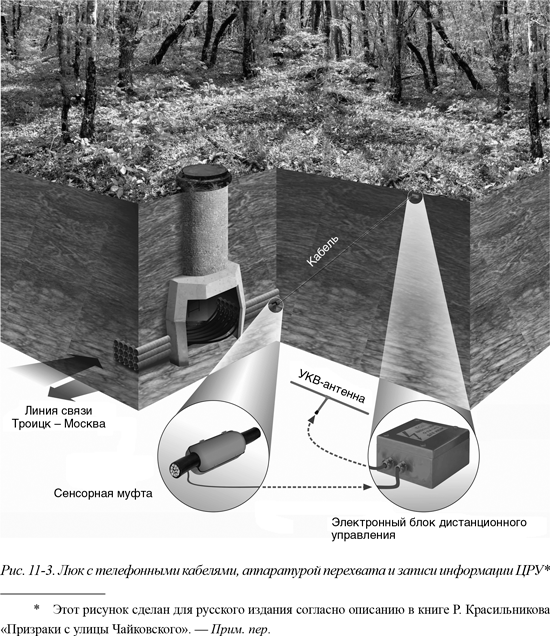 Операция CKTAW имела своей целью контроль подземных коммуникаций, которые соединяли Министерство обороны СССР с научно-исследовательским институтом ядерных вооружений «Красная Пахра», расположенным в закрытом городке Троицке недалеко от Москвы{204}. Сведения, передаваемые по телефону, телефаксу и телетайпу между этими двумя организациями, записывались во время их прохождения через безопасную, как полагали советские специалисты, часть подземного кабеля, расположенного около шоссе в пригороде Москвы.