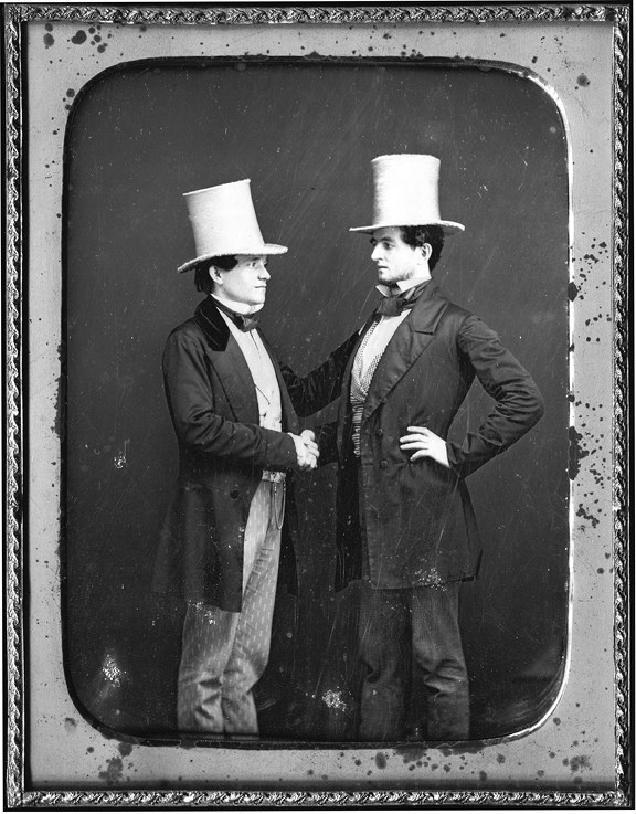 1. Дагерротип. Двое мужчин в светлых цилиндрах из пухового фетра. Около 1854. Из коллекции Марка Кенигсберга