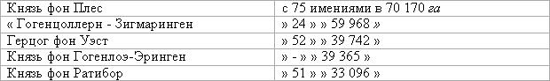 Наоборот, отдельные лица считают своею собственностью целый ряд сельскохозяйственных предприятий. Самым крупным германским земельным собственником является король прусский, владеющий 83 имениями с 98 746 га, за ним следуют: