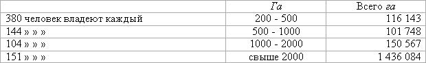 Это было в 1896 году. С течением времени положение еще больше ухудшилось. По данным сельскохозяйственной переписи 1902 года, на 18 437 хозяйств (0,7 процента общего количества) приходилось 9 929 920 га, или 1/2 общей земельной площади.