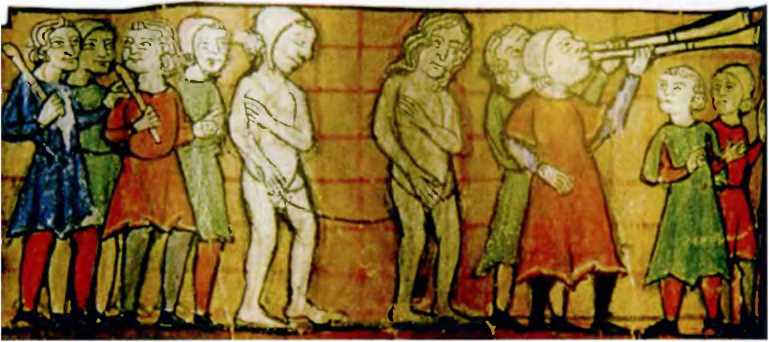 Тем не менее, следует отметить, что уже в XIII-XV вв. проституция в Западной Европе в ряде случаев рассматривалась все же как преступление, которым активно интересовались светские суды[570]. В частности, в Англии именно в XIV в. произошла постепенная систематизация наказаний, применяемых в подобных ситуациях. Если ранее задержанную «при исполнении» проститутку надлежало попросту выпороть перед церковью или на рыночной площади[571], то отныне повсеместно вводилась система штрафов (причем в Лондоне они имели фиксированный вид)[572].