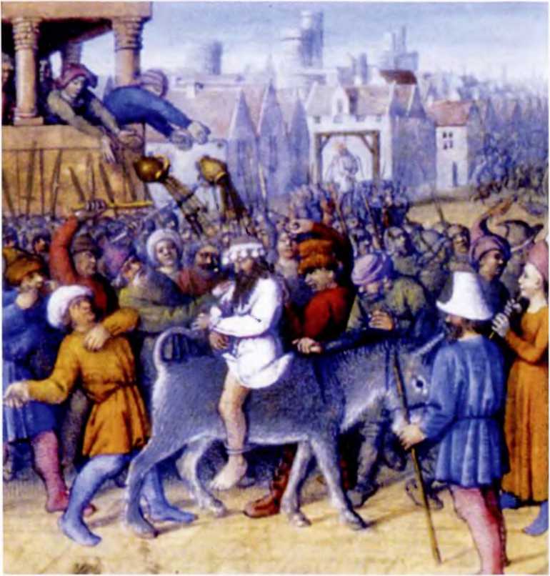 Илл. 6 — Шаривари. Миниатюра из: Mamerot S. Les passages d’Outremer faits par le: Fran?ais contre les Turcs depuis Charlemagne jusquen 1462 (BNF. Ms. fr. 5594, fol. 193v) Брюгге, 1474–1475 гг.