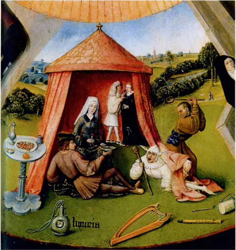 Илл. 9 — Грех разврата (luxuria). Иероним Босх. Семь смертных грехов (фрагмент). 1475–1480 гг.