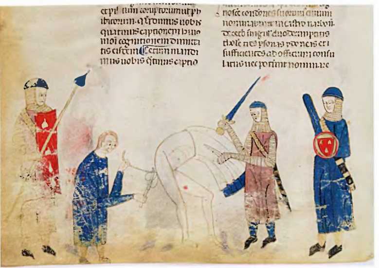 Илл. 10 — Наказание кастрацией. «Кутюмы Тулузы» (BNE Ms. lat. 9187, fol. 32v). Тулуза, 1292–1297 гг.