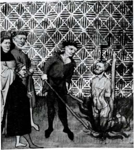 Илл. 11 — Казнь Аденольфо IV д’Аквино в 1294 г. Миниатюра из: Grandes chroniques de France (London, British Library. Ms. Royal 20. C.VII, fol. 26v). Париж, 1400–1405 гг.