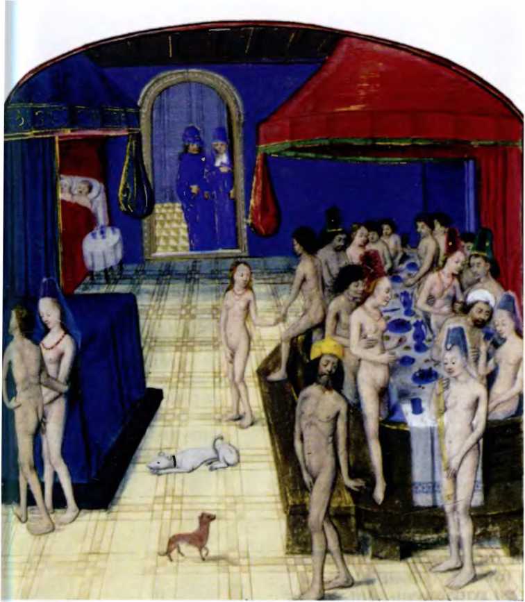 То же самое можно сказать практически обо всех прочих европейских городах, правители которых, отчаявшись, видимо, полностью избавить население от любви к столь греховному времяпрепровождению, предпочитали сами брать его под контроль[569]. На сохранившихся до наших дней миниатюрах с изображением средневековых публичных домов мы очень часто, пусть и на заднем плане, видим представителей властей, пристально наблюдающих за женщинами легкого поведения и их клиентами (Илл. 12).
