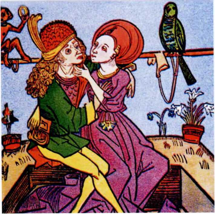 Илл. 13 — Юноша и проститутка. Раскрашенная гравюра на дереве, Германия, XV в.