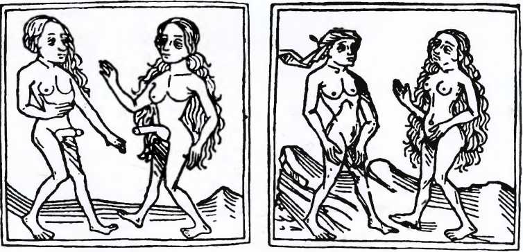 Похожей точки зрения придерживался и Джон Мандевиль, в своих «Путешествиях» (1357–1371 гг.) сообщая о некоем далеком острове как о месте проживания гермафродитов (Илл. 14):
