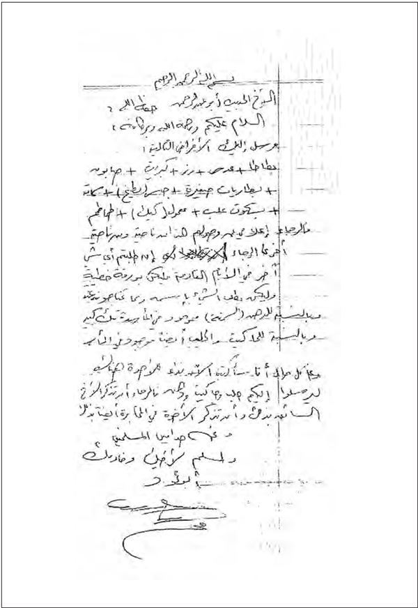 Документ № 43 ПИСЬМО ВОЕННОГО ПРЕДВОДИТЕЛЯ АЛЬ-КАИДЫ, КАСАЮЩЕЕСЯ СНАБЖЕНИЯ ПРОДОВОЛЬСТВИЕМ «БЕРЛОГИ» БЕН ЛАДЕНА