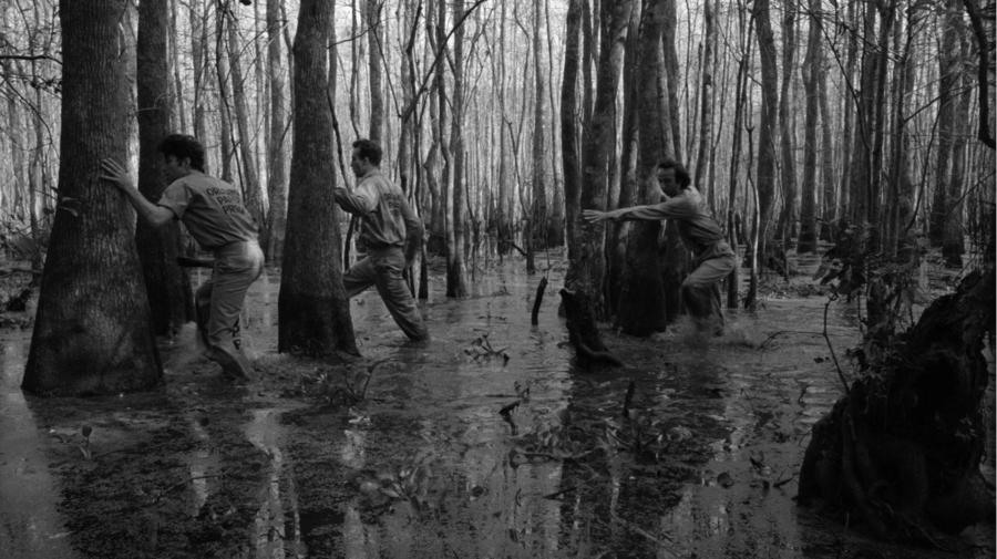 Восхитительная клоунада Бениньи, которую Джармуш, по собственному признанию, старался изо всех сил умерить – самые комические дубли не вошли в финальный монтаж, – уравновешена поэтическим взглядом, способностью иностранца видеть в унылой действительности «грустный прекрасный мир». Уместно вспомнить о том, что в Италии Бениньи известен и как поэт-импровизатор. Он вестник других краев, далекой недоступной Италии, и ему открыта невидимая дверь (или, точнее, окно?) в разомкнутое пространство движения и свободы. Побег из тюрьмы совершается по его инициативе. И невероятная красота безлюдных пейзажей Луизианы, куда попадают после побега герои фильма, – тоже открытие итальянца, страстно читающего в тюремной камере, причем по-итальянски, стихи своего любимого американского поэта Уолта Уитмена.