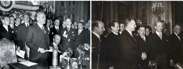 Подписание франко-германской декларации о ненападении. И. Риббентроп и Ж. Бонне.