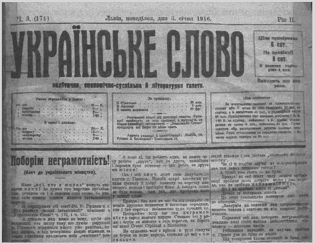 Стаття Северини Кабаровської *Поборім неграмотність» (*Украінське слово», Львів, 1916 рік)