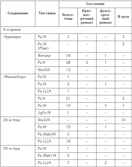 Наличие бронетехники в соединениях группы армий «Центр» на 5 апреля 1945 г.