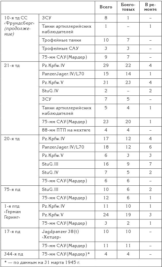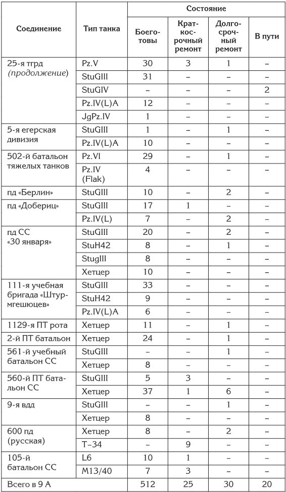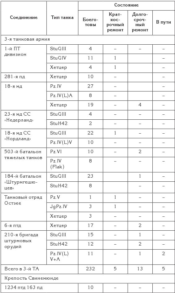 Наличие и состояние бронетехники группы армий «Висла» на 13 апреля 1945 г.
